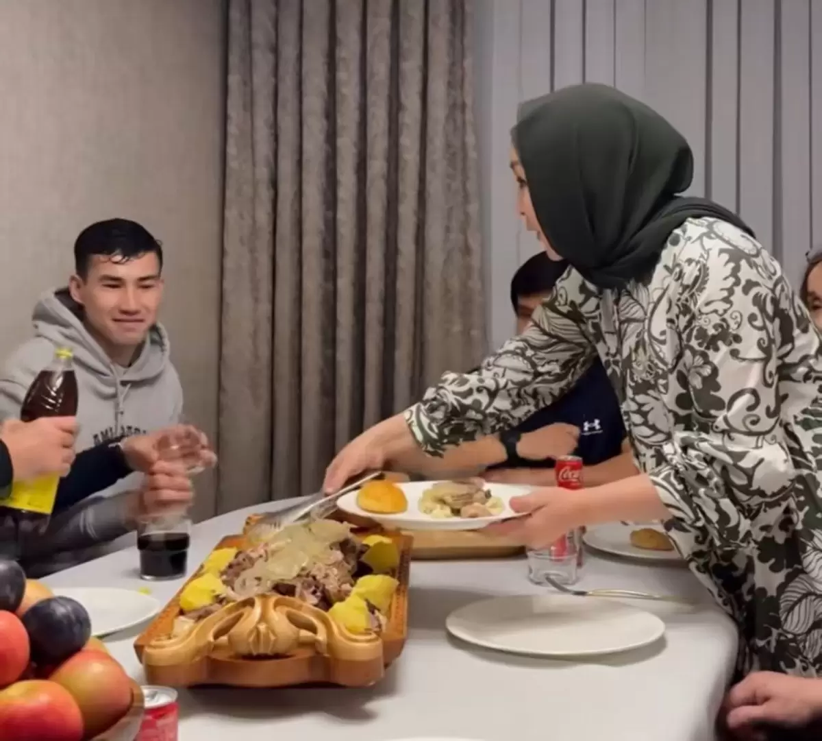 Айнұр Тұрсынбаеваның Instagram желісіндегі ресми парақшасына жариялаған видеодан футболшыға ет асып, ыстық ықыласпен қарсы алған шаңырақ иелері оған арнайы сый-сияпат табыстағанын көруге болады. Өз кезегінде Бахтиёр де үйдегі балалармен кездесіп, олардың жейдесіне қолтаңбасын қойып, бірге естелік суретке түсті.