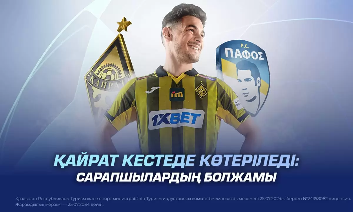 «Қайрат» жанкүйерлері үшін 1XBET «Тәуекелсіз ұтыс тігу» акциясын бастады. «Қайрат» пен «Пафос» матчына болжам жасаңыз және нәтижесі сәтсіз болған жағдайда, кешбэкпен 50 000 дейін қайтарым ала аласыз!