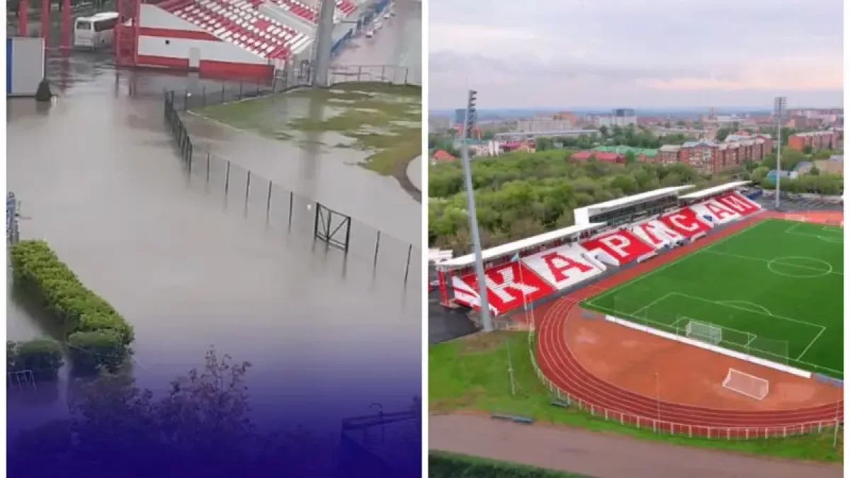 Петропавлда 2,6 миллиард теңгеге жөндеуден өткен "Қарасай" стадионын жаңбыр суы басты деген ақпарат тарады.