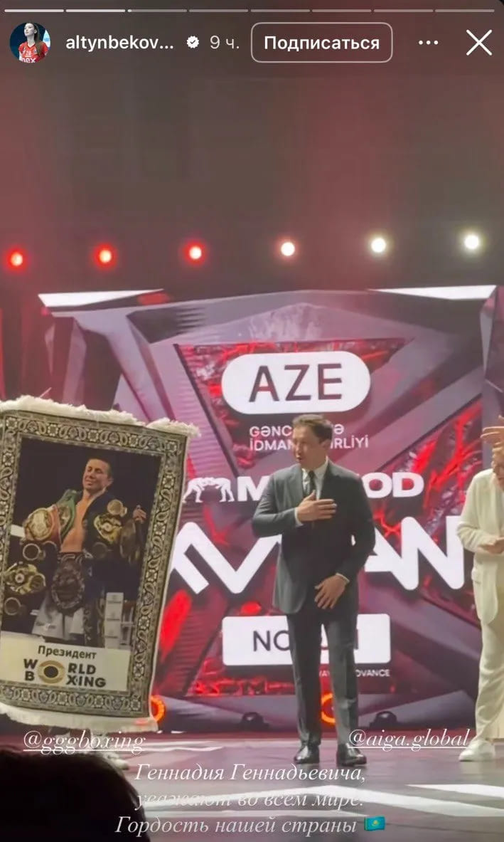 Айтулы шараның ашылу салтанатында Геннадий Головкин құттықтау сөз сөйлеп, одан кейін отандасымызға осы елдің символы – әзербайжан кілемі табысталды.