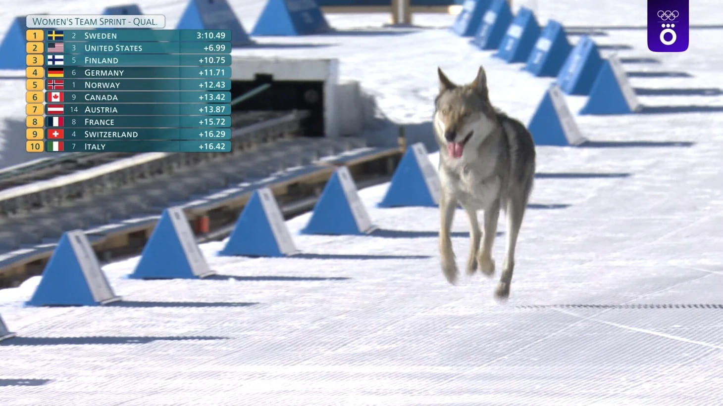 Италияда өтіп жатқан Қысқы Олимпиада-2026 ойындарында күтпеген оқиға тіркелді. Әйелдер арасындағы командалық спринттің іріктеу кезеңінде жарыс жолына ит жүгіріп шығып, спортшылармен бірге мәре сызығын кесіп өтті.