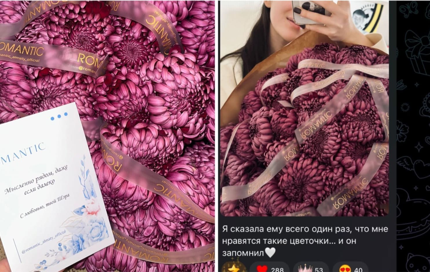 «Мен қандай гүлдерді ұнататынымды бір рет айтқан едім… Ол соны ұмытпай, арнайы жіберіпті».