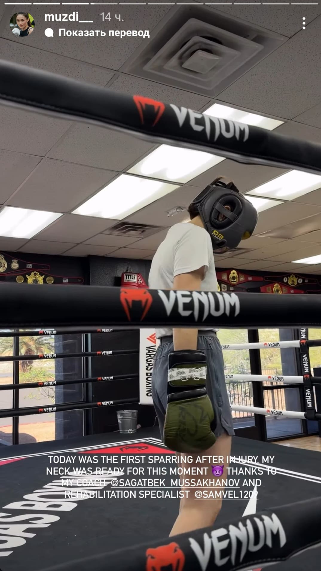 Боксшы әлеуметтік желідегі сторисінде рингтен түсірілген сәттерді жариялап, мойын жарақатынан кейін алғаш рет толыққанды спарринг өткізгенін айтты. Оның сөзінше, қалпына келу кезеңі сәтті аяқталған.